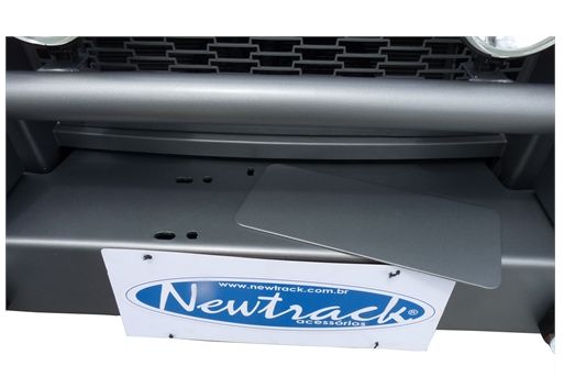 Não requer furação no veículo. Montado diretamente ao parachoque dianteiro através de 04 parafusos embutidos na parte inferior do mesmo.